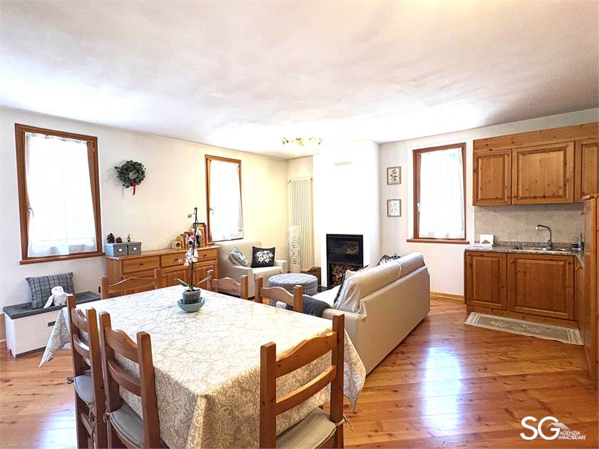 Trattasi di appartamento nuovo dotato di tutti i confort, composto da soggiorno con angolo cottura ampio e luminoso nel quale vi è un caminetto, una zona notte con due comode camere da letto, una matrimoniale ed una con due letti, un bagno con doccia finestrato. Vi sono due posti auto uno esterno ed uno interno. Dall'autorimessa si accede all'ascensore per arrivare al piano. Elettrodomestici presenti tutti: TV, lavatrice, lavastoviglie aspirapolvere.